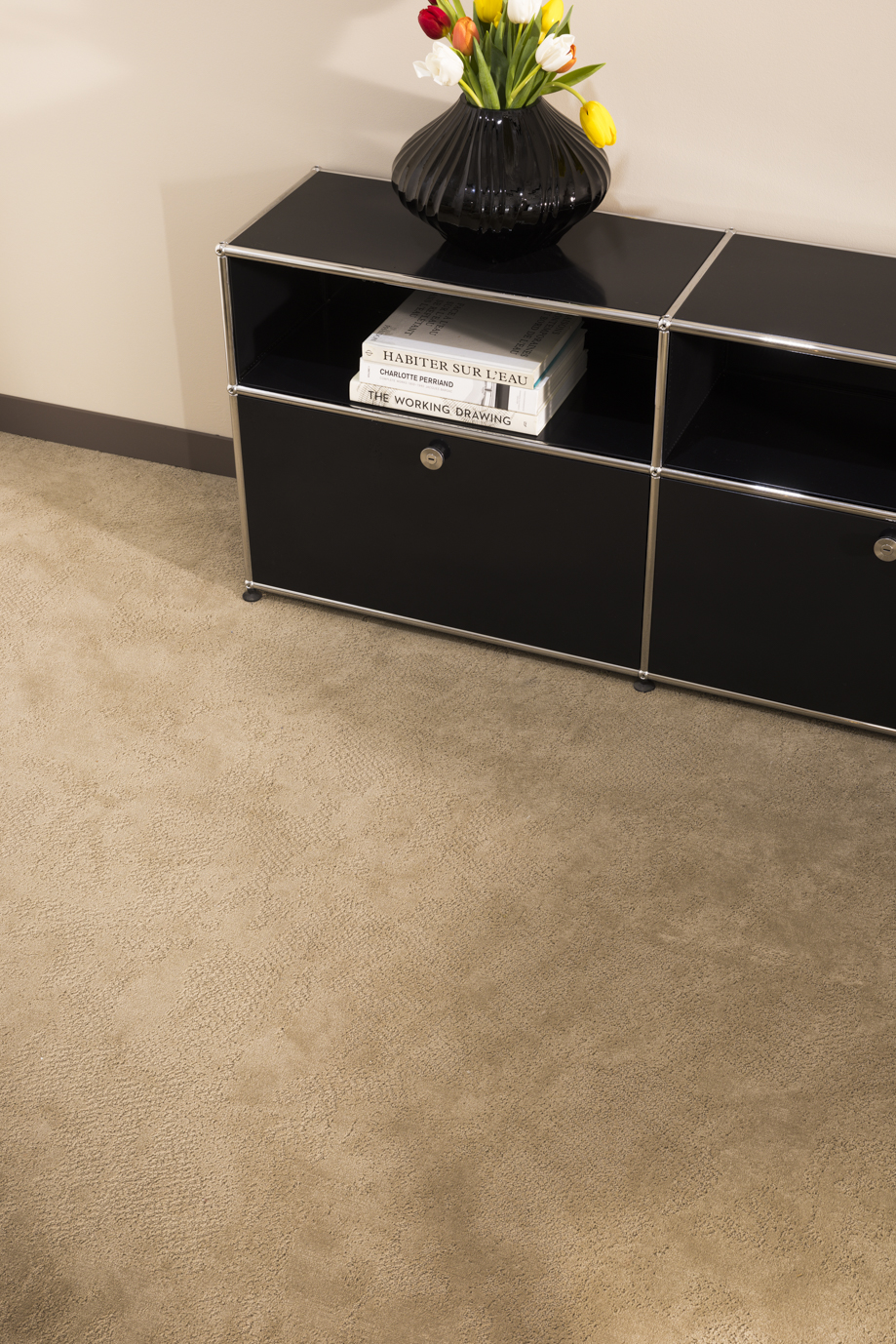 Het kamerbrede Louvre-tapijt met zijn zacht, weelderig fluweel van 1.250 g/m2 is verkrijgbaar in 4 meter breed en in 7 minerale tinten (granietbeige, leisteengrijs, sandelhoutbruin etc.). Het bewegende motief is geïnspireerd op doorsnedes van kwarts of graniet. Het loopt op willekeurige wijze over de vloer, is zeer comfortabel en creëert een serene sfeer in uw hotelkamers.